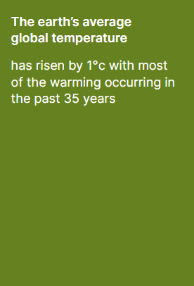 has risen by 1°c with most of the warming occurring in the past 35 years